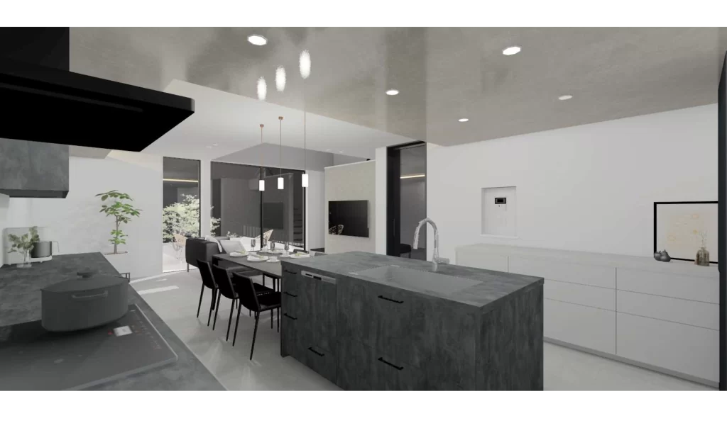 アイランドがいいけどレンジフードがインテリアの邪魔になるという悩みはデザインにこだわりたいニケンのお施主様に多い意見。