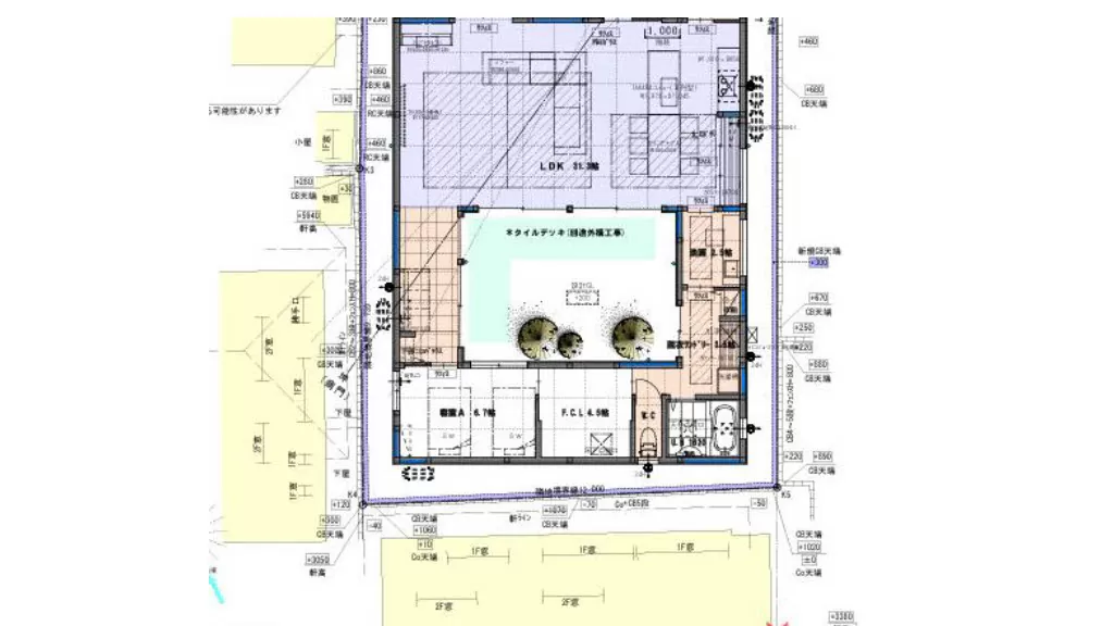 例えばI型でダイニング横並びにすると回遊するときにキッチン幅2.5m+テーブル幅1.8mなど少なくとも計4m以上をぐるっと回ることになりますし、6m以上の空間が必要になります。限られた敷地と予算の中でこの寸法をキッチンダイニングに確保しながらLDKを構成することは現実的ではないことも多々あります。 -