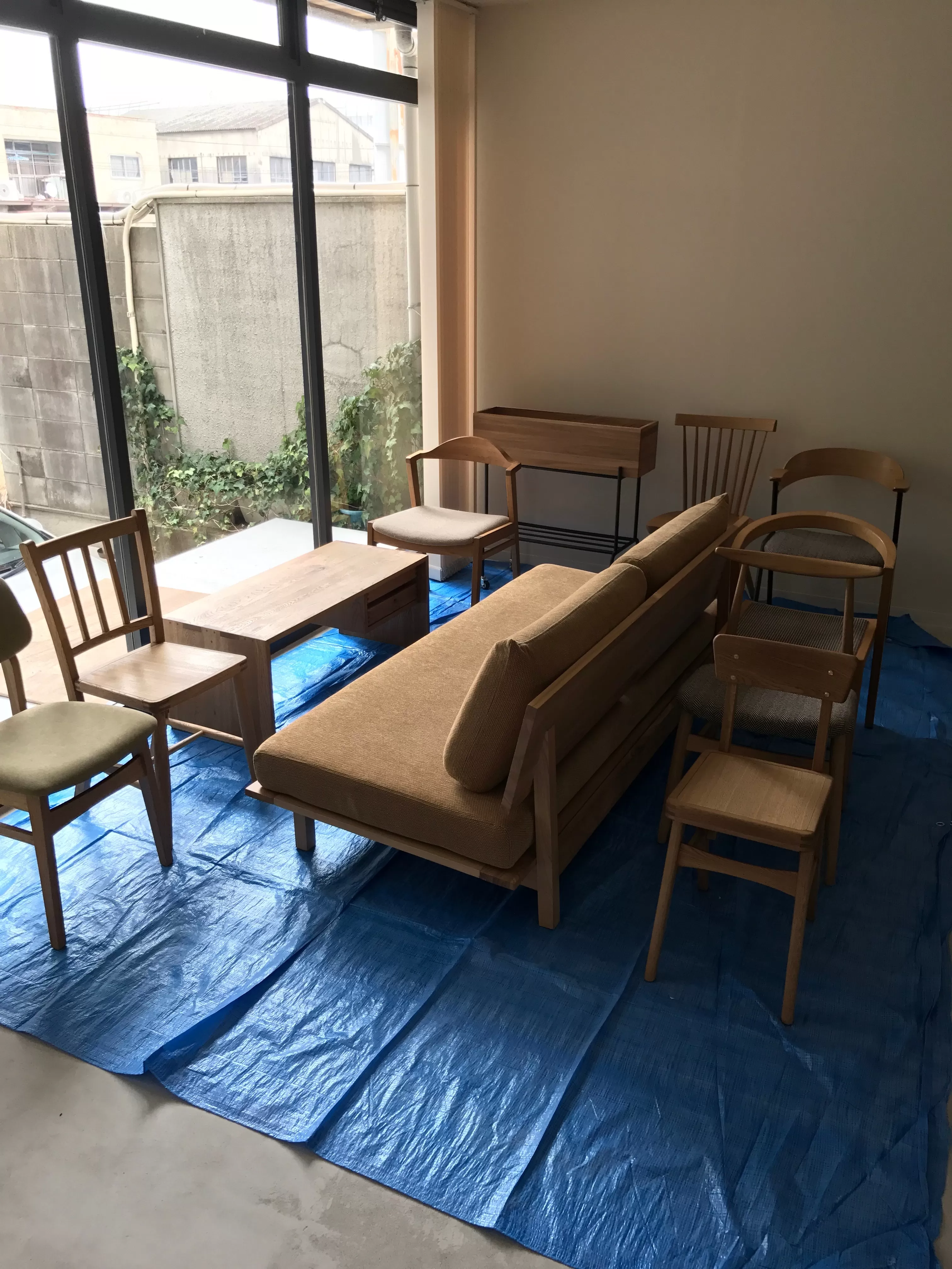 椅子のラインナップのうち数脚は、大和屋家具さんが定期的に交換に来てくださいます。