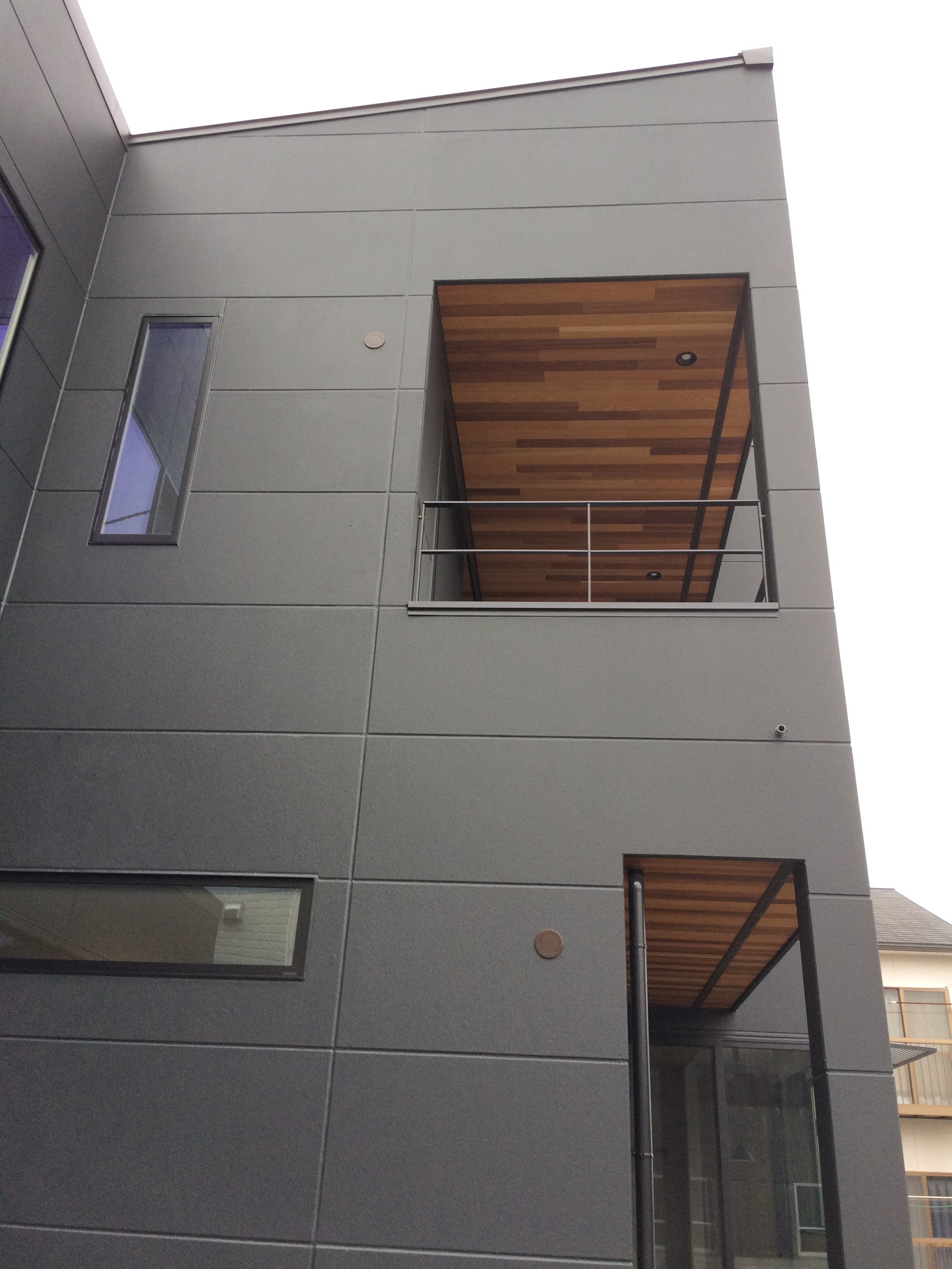 ↓外観パース やはり本物のレッドシダーの軒天上の質感の方が圧倒的によいですね。パースだとなかなかそこまでの質感が表現できないのが難しいところです