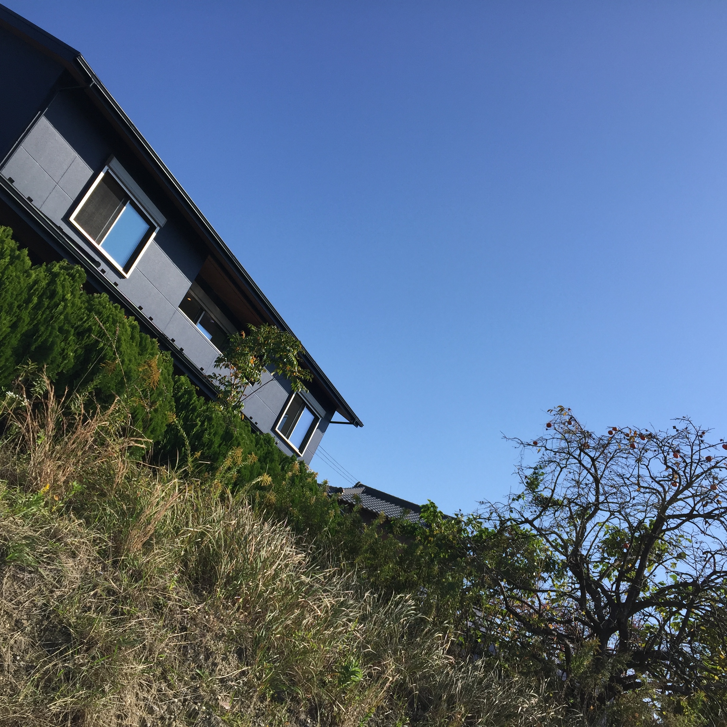 ↓柿の実のオレンジも秋の青空によく映えて、やはり緑と共に家がある姿が自然に感じました。
