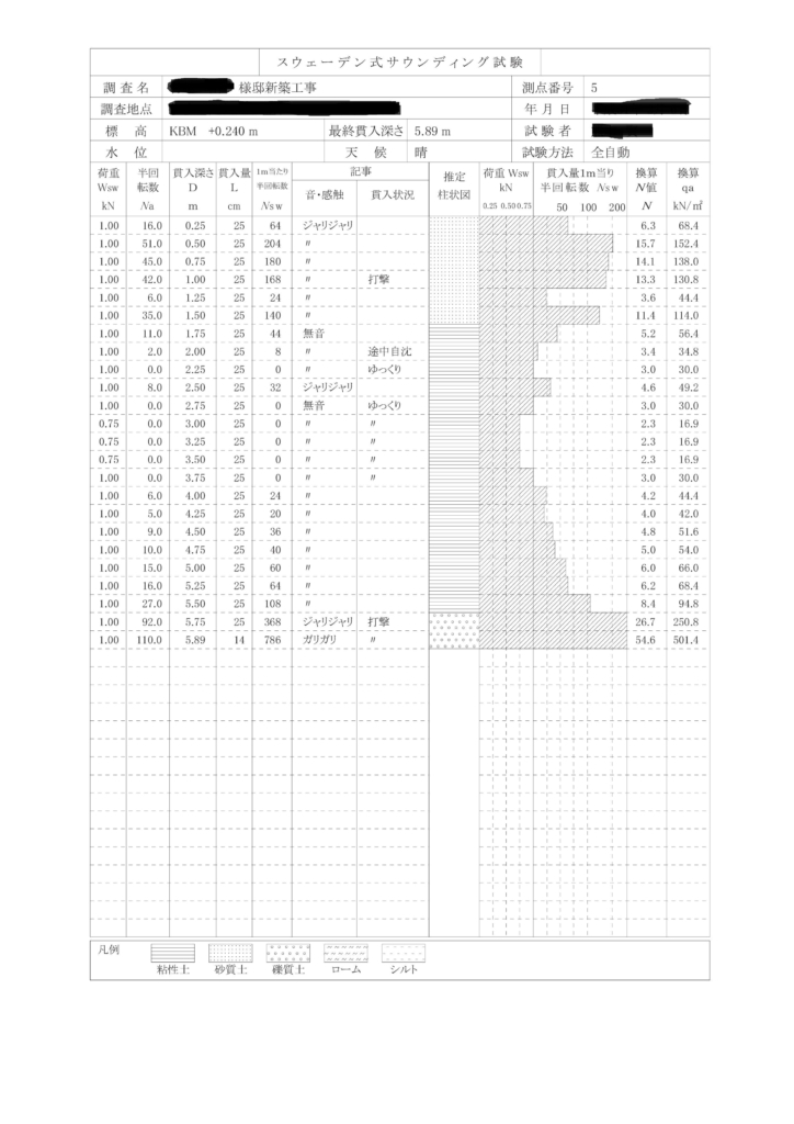 *土質の右に記載されるグラフは右に伸びるほど地盤が固く良好ということを表しています。