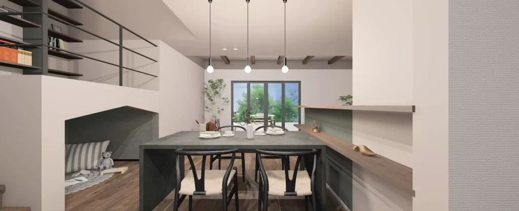 時代の先を見据え、コストの掛けどころ・抑えどころを賢く選択しながら、土間やヌック、家事ラクなども加えた快適かつ安全安心に暮らす素敵なお家です。