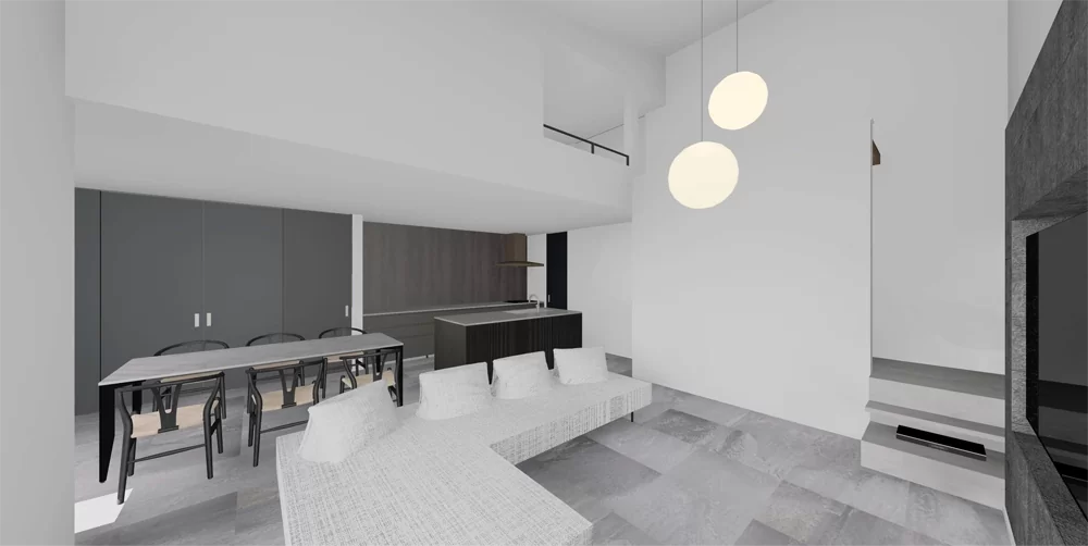 分譲マンションにお住まいだったY様ですが子供と愛犬が伸び伸び・広々と暮らしたいと、一軒家の建築を決意。人気のエリアの限られた敷地の中で、2台並列ガレージ・26帖2階LDK&16帖ゴルフシミュレーションルームのある夢のようなマイホームを実現しました。