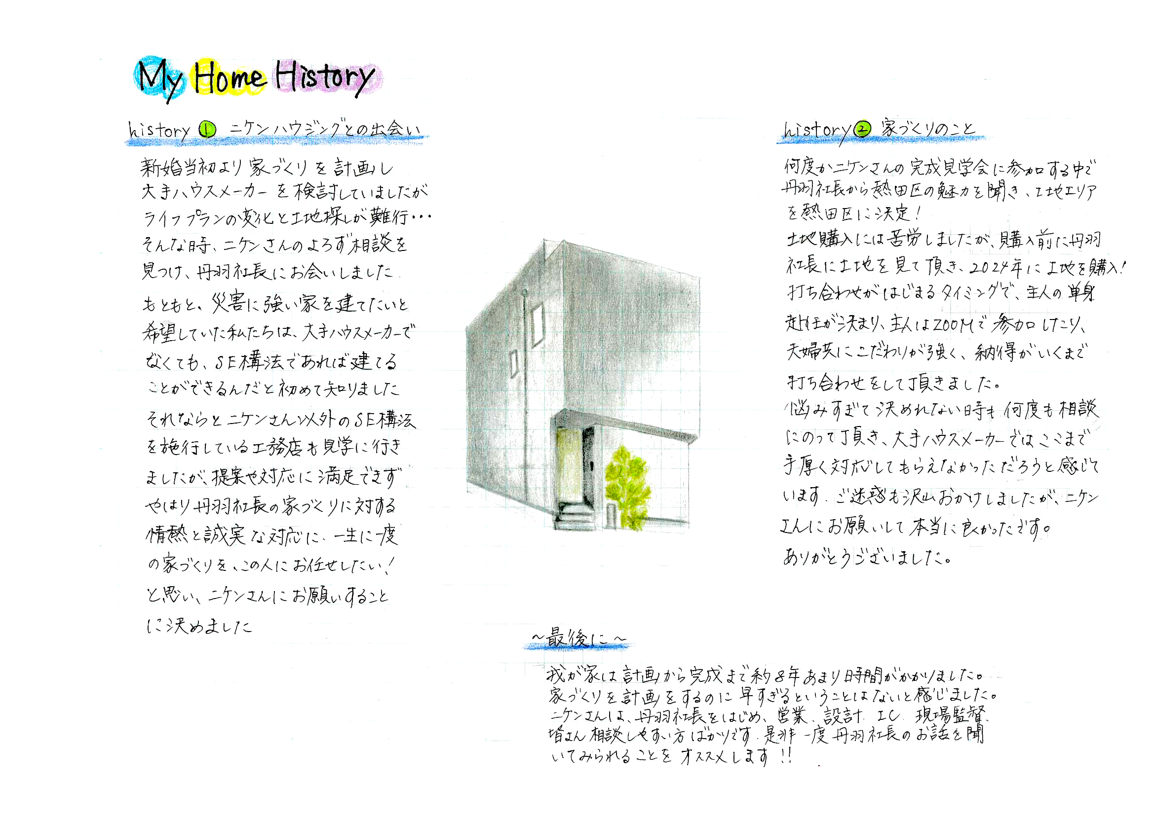 お施主様からの直筆メッセージ