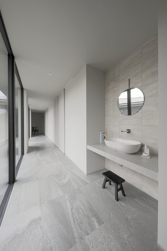旅館や日本家屋の様な中庭に沿って窓を設けている一本廊下・